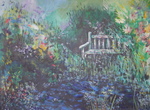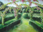1996Getrimde tuin met rozenbogen en hagen.