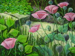 Rose papavers met tuintrapje.